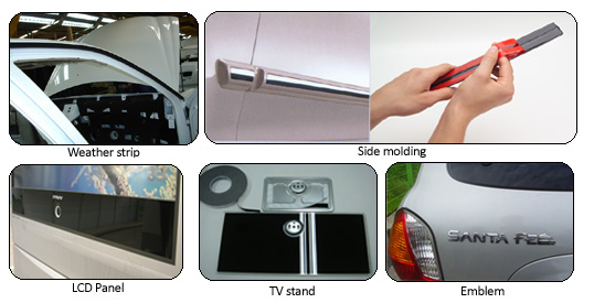 5. 應用 :車身標牌件、防擦條、亮條、車頂飾條、標志標牌;電梯以及手機視窗金屬件和塑料件的粘貼等